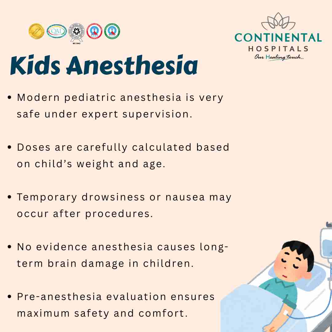 At a leading center like Continental Hospitals, anesthesia care follows strict international safety protocols, making it one of the most trusted options for pediatric care and a preferred choice for families looking for the best hospital in Hyderabad.