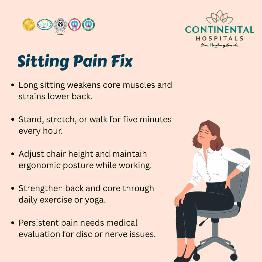 If you suffer from persistent back pain or stiffness after sitting, consult the expert orthopedic specialists at Continental Hospitals, Hyderabad. They can help identify the cause, guide you with personalized treatment, and get you back to living pain-free.