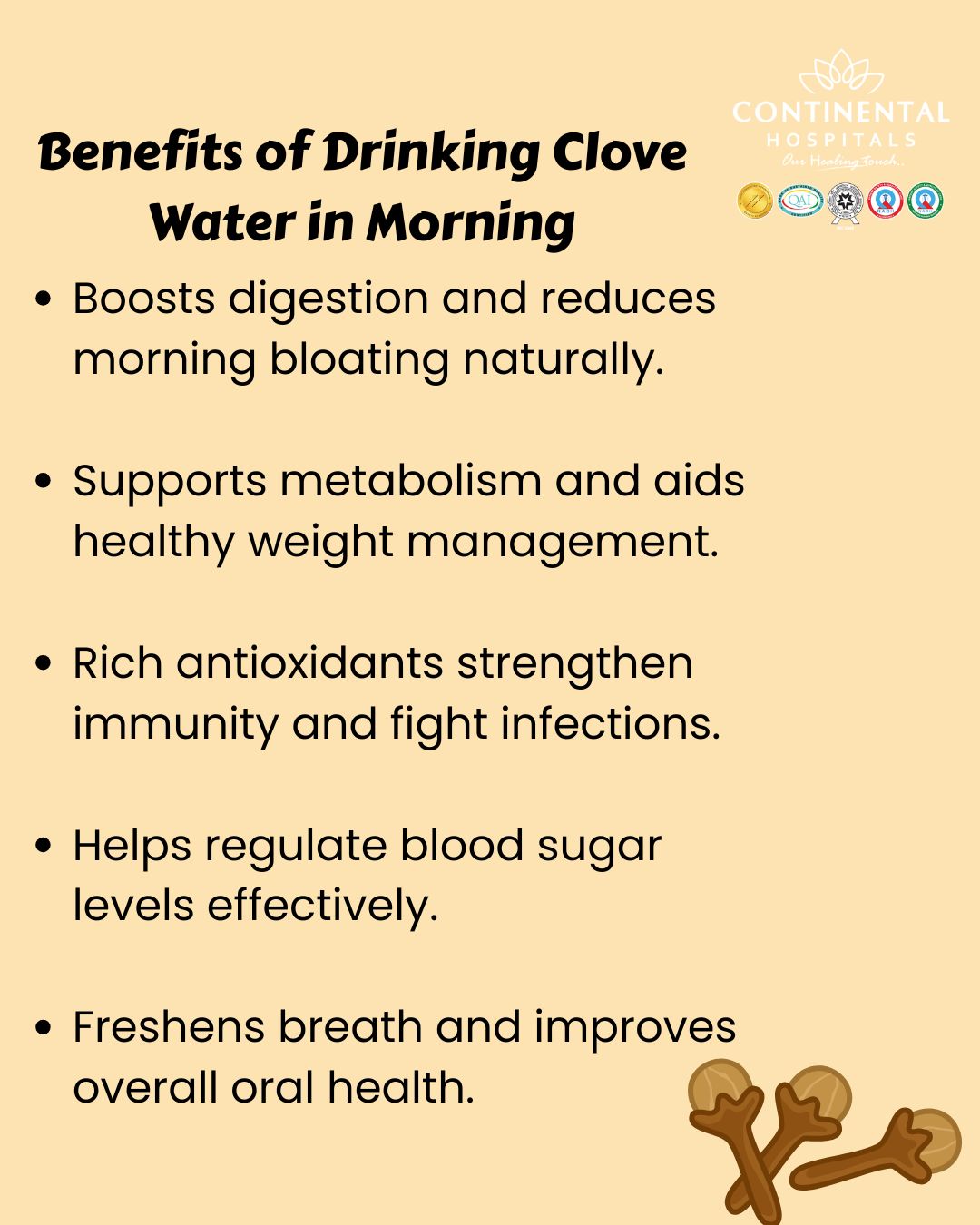 However, moderation is key. Natural does not always mean risk free. If you suffer from chronic health issues or are unsure whether clove is good for your condition, consult the expert doctors at Continental Hospitals, the Best hospital in Hyderabad. Their experienced General Physicians and Nutrition Specialists can guide you with personalized advice for safe and effective health management.