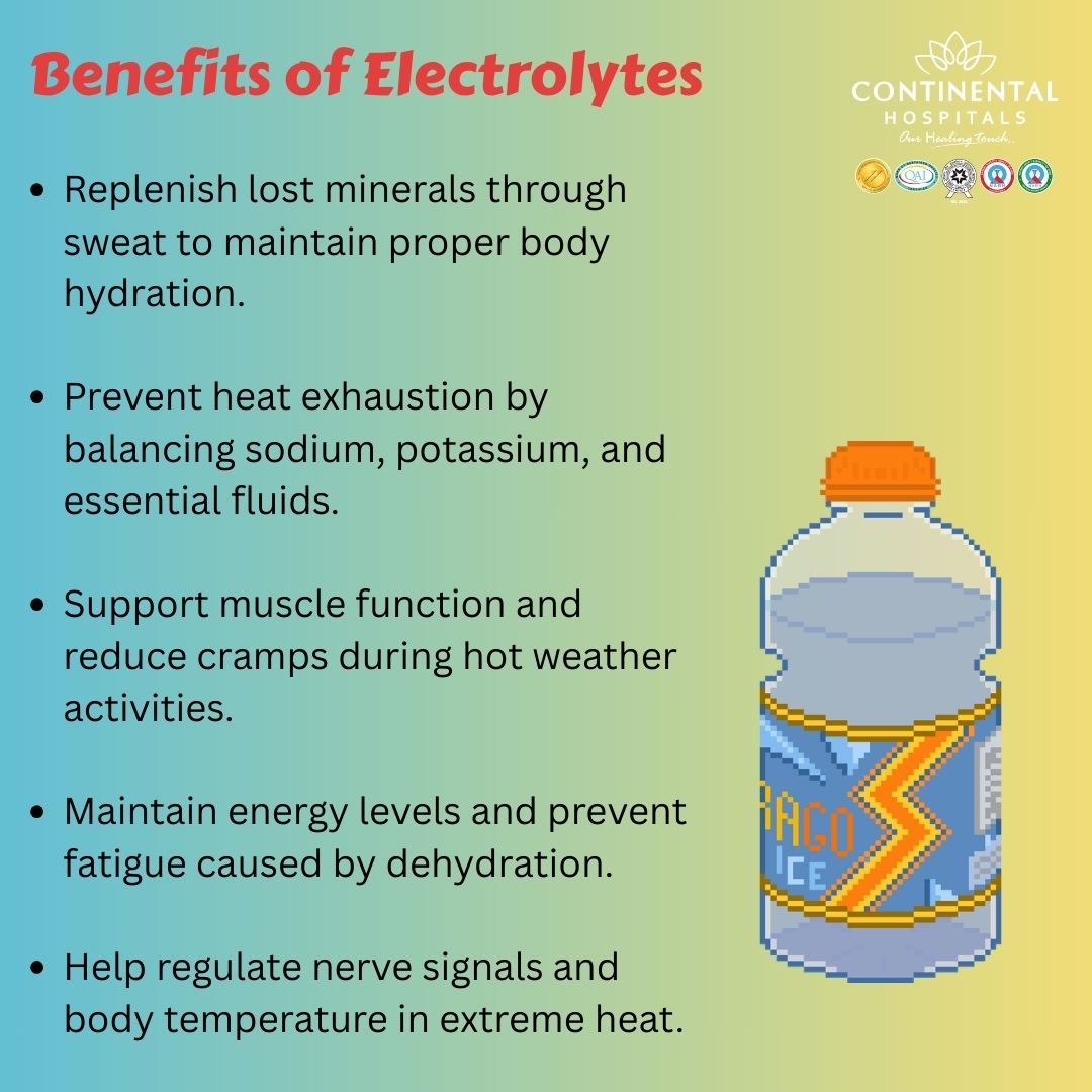 Visit our internal medicine department at Continental Hospitals, Hyderabad, for expert guidance on hydration and electrolyte balance. Visit the Internal Medicine department.