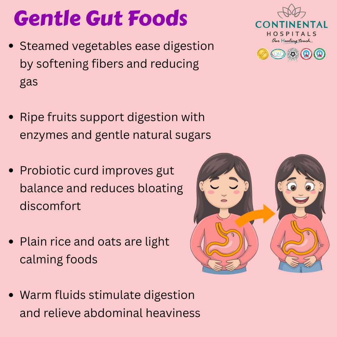 Simple meals like rice, dal, curd, and cooked vegetables are gentle and nourishing.