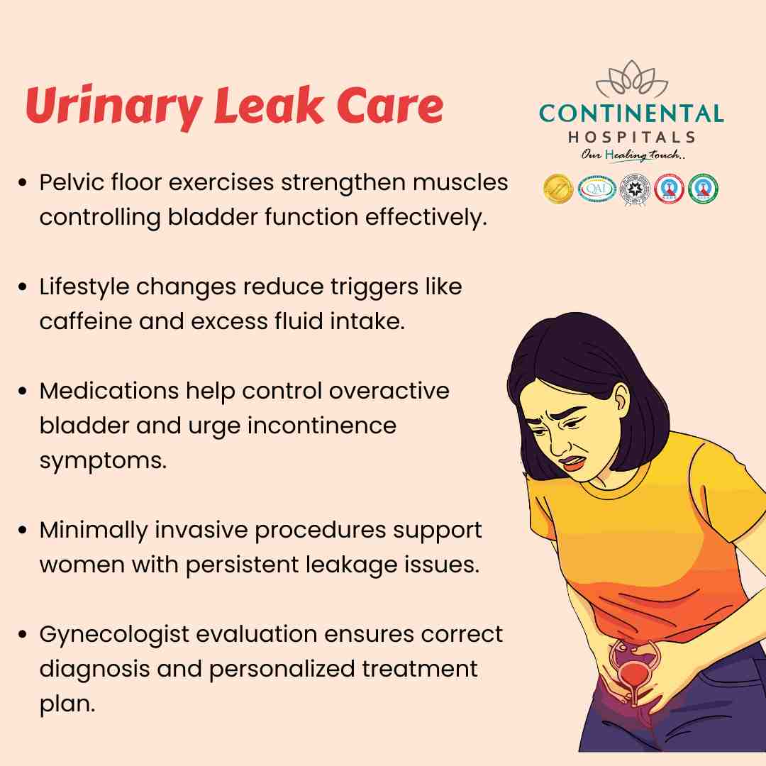 If you suffer from urinary leakage, consult our best gynecologist at Continental Hospitals, Hyderabad. Our specialists will evaluate your condition thoroughly and recommend the most effective and personalized treatment plan. Book an appointment today at one of the best hospitals in Hyderabad and take the first step toward regaining bladder control and confidence.