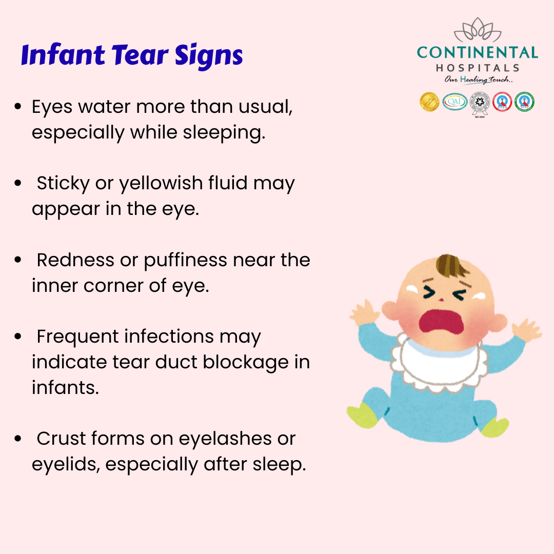 If your baby shows signs of tear duct obstruction in infants or recurrent eye infections, visit our Pediatrics Speciality at Continental Hospitals, Hyderabad.