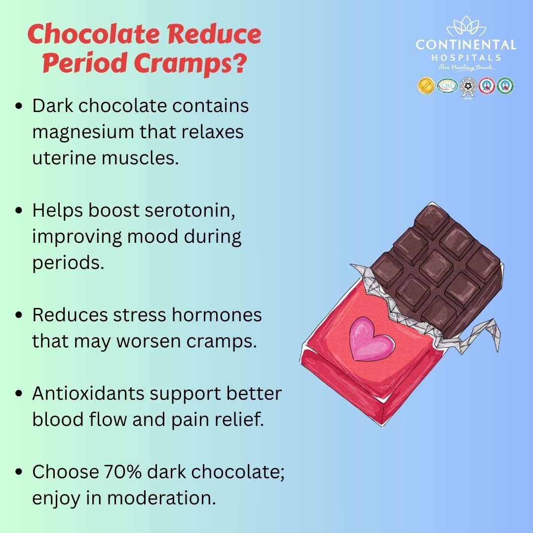 “Dark chocolate can provide mild relief due to its magnesium and mood-enhancing compounds. However, it should be part of a comprehensive menstrual care plan that includes proper nutrition, hydration, and medical evaluation when necessary,” says a senior gynecology specialist.