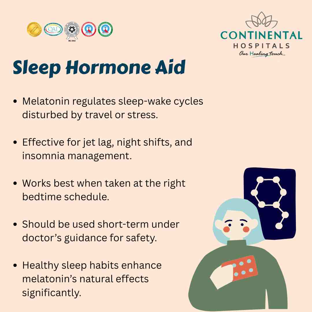At Continental Hospitals, experienced specialists in Internal Medicine, Neurology, and Sleep Medicine provide comprehensive evaluation and treatment for sleep disorders, jet lag, and other travel-related health concerns. The hospital combines evidence-based medical practices with modern sleep assessment tools to help you restore your body’s natural rhythm.