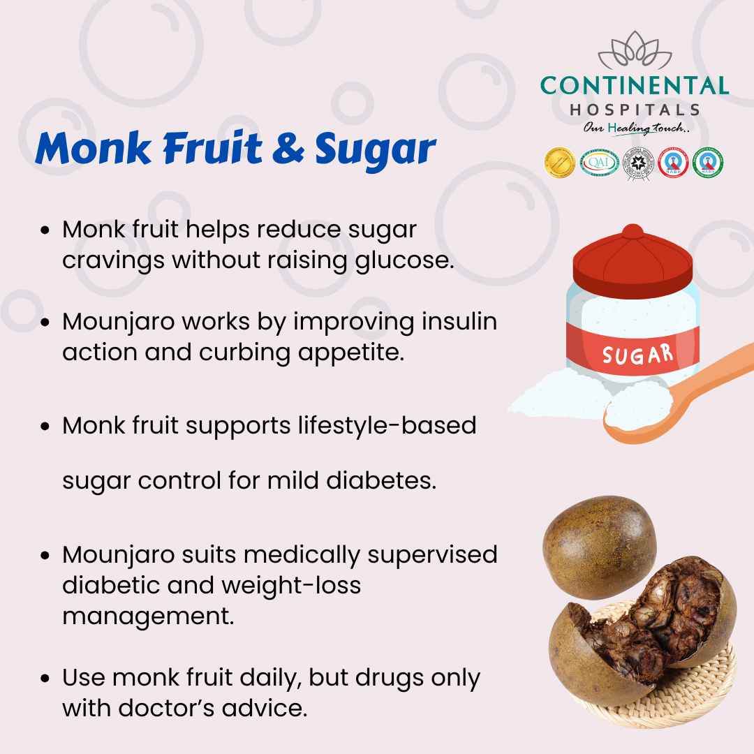 Monk fruit may aid blood sugar control, but for personalized diabetes care like Mounjaro, consult our best endocrinologists at Continental Hospitals.