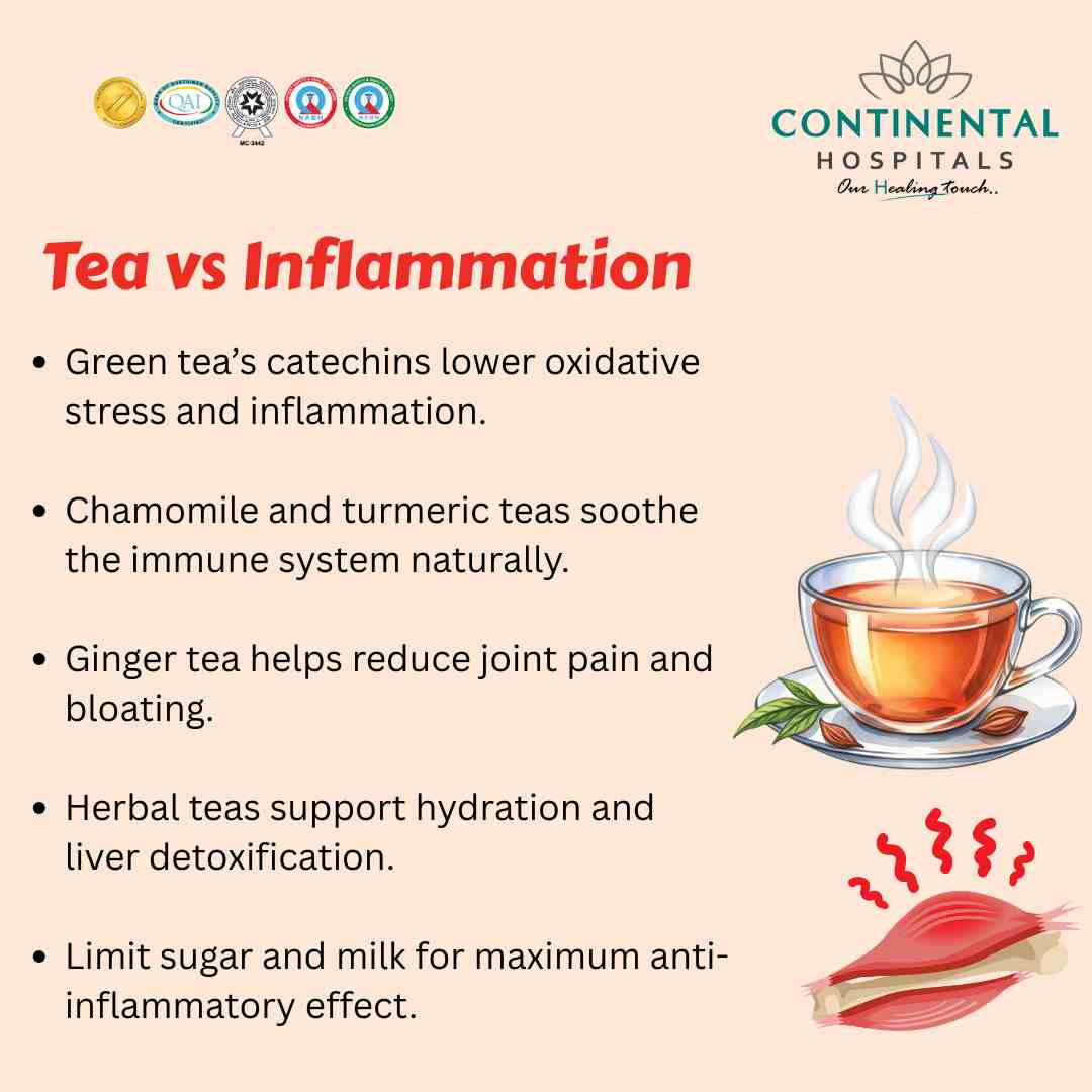 Tea is packed with bioactive compounds known for their antioxidant and anti-inflammatory properties. These include polyphenols, catechins, and flavonoids, which help neutralize free radicals that contribute to inflammation. Regular consumption of tea can help lower inflammatory markers in the body and support long-term health.