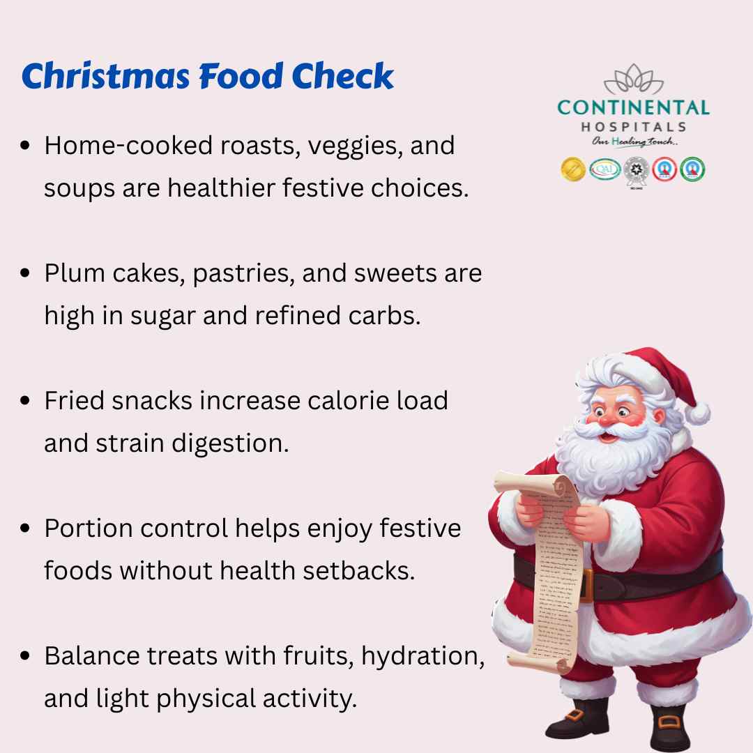 Christmas is a time for joy, not health worries. You do not need to avoid festive food completely. The key lies in balance, portion control, and mindful eating. Choose healthier options when you can, limit foods that burden your digestion, and listen to your body.