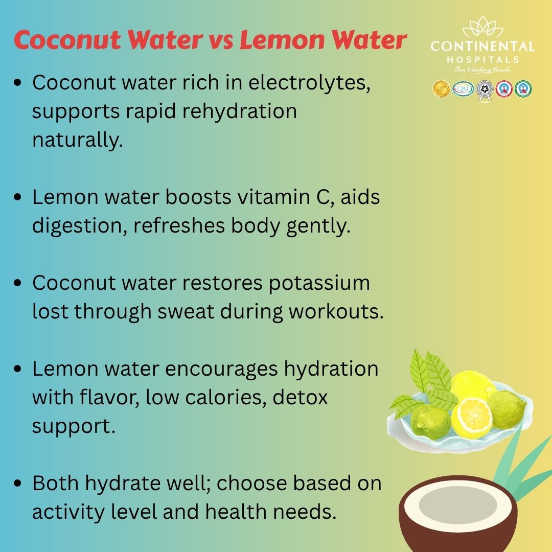 When comparing Coconut Water vs Lemon Water, the "better" choice often depends on your specific needs at the moment.