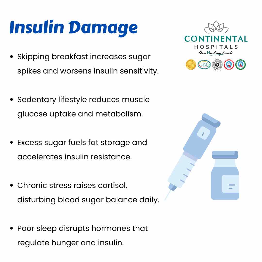 Insulin resistance is not something that appears suddenly. It builds up through simple daily habits that you may not even notice. The positive side is that you can reverse many of these changes with small, consistent improvements. Focus on movement, sleep, mindful eating and stress reduction. With the right guidance and timely care, you can protect your metabolic health and prevent type 2 diabetes.