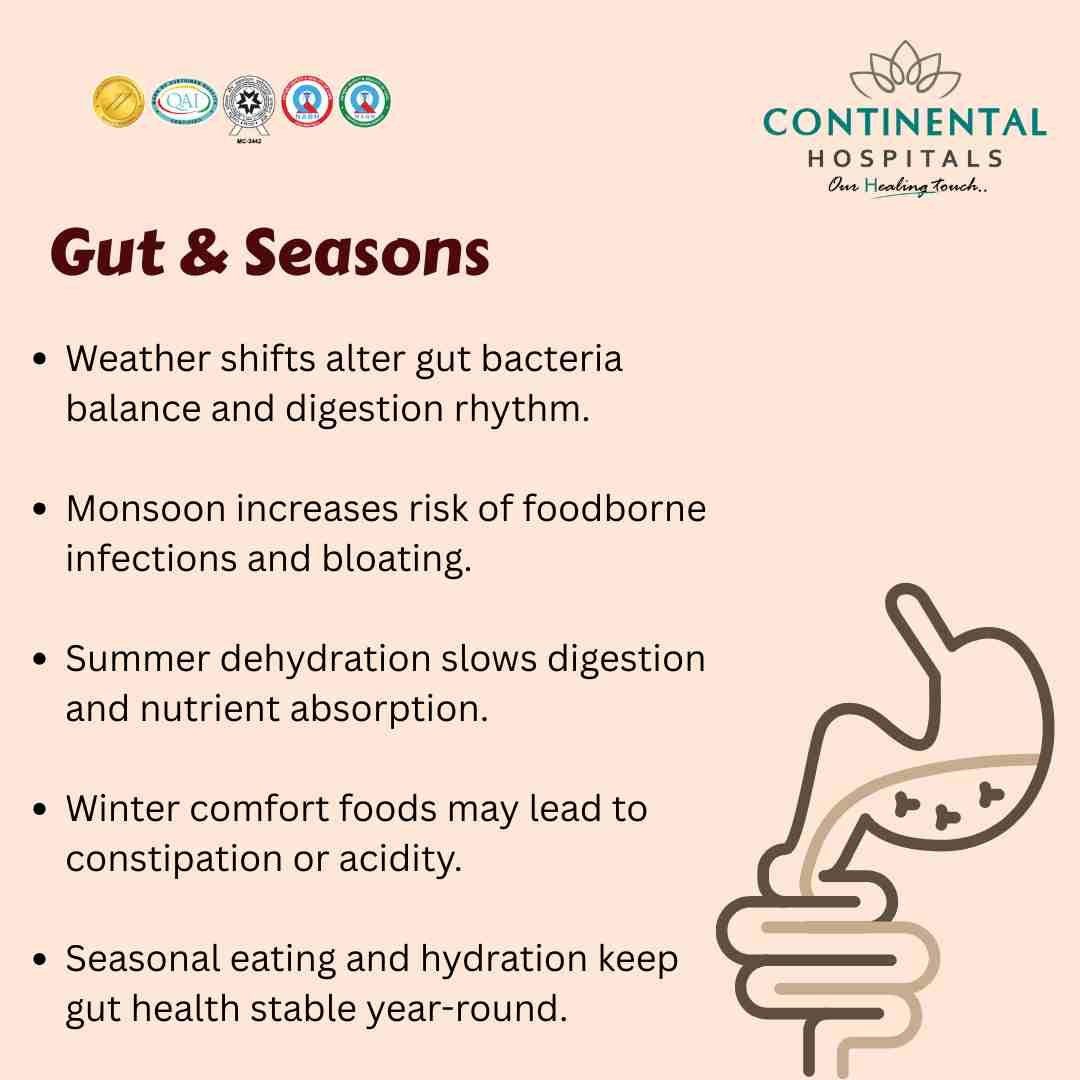 If you suffer from frequent digestive problems or unexplained stomach discomfort during seasonal changes, consult our best Gastroenterologist at Continental Hospitals, Hyderabad, for expert diagnosis and care. Our team of specialists is dedicated to restoring your digestive health and improving your overall well-being.
