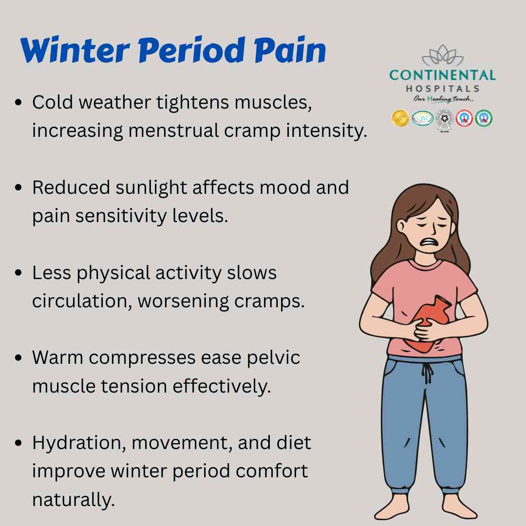 Winter can aggravate period pain due to cold temperatures, muscle tension, hormonal changes, low vitamin D levels, and reduced physical activity. Understanding how winter affects your body can help you take proactive steps to manage winter menstrual cramps and winter PMS symptoms more effectively.