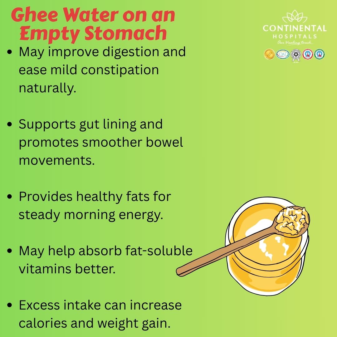 People with mild constipation sometimes find relief after regularly drinking ghee water. However, persistent constipation needs medical evaluation by a gastroenterologist.