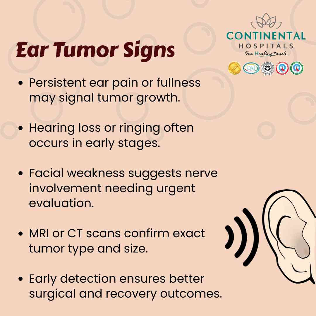 If you suffer from persistent ear pain, ringing, or hearing changes, do not delay seeking medical help. These symptoms may seem minor, but they could indicate an underlying tumor or ear condition that needs prompt attention. Getting evaluated by an ENT specialist at Continental Hospitals can ensure early diagnosis and effective treatment before complications arise.