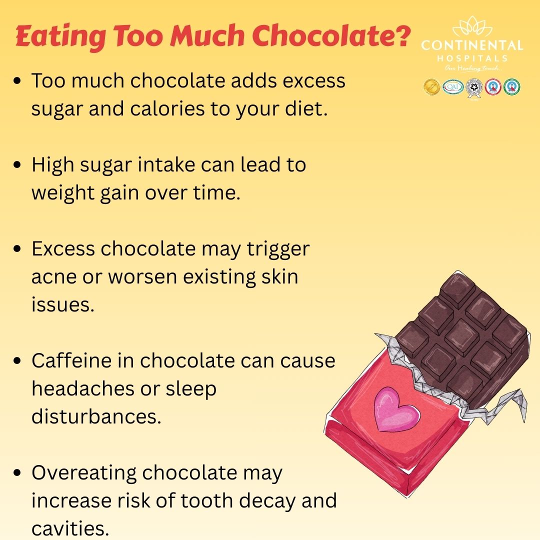 Eating chocolate occasionally is unlikely to cause harm. But frequent or excessive intake can affect the body in several ways. The chocolate health effects depend on the quantity, the type of chocolate, and your overall diet.