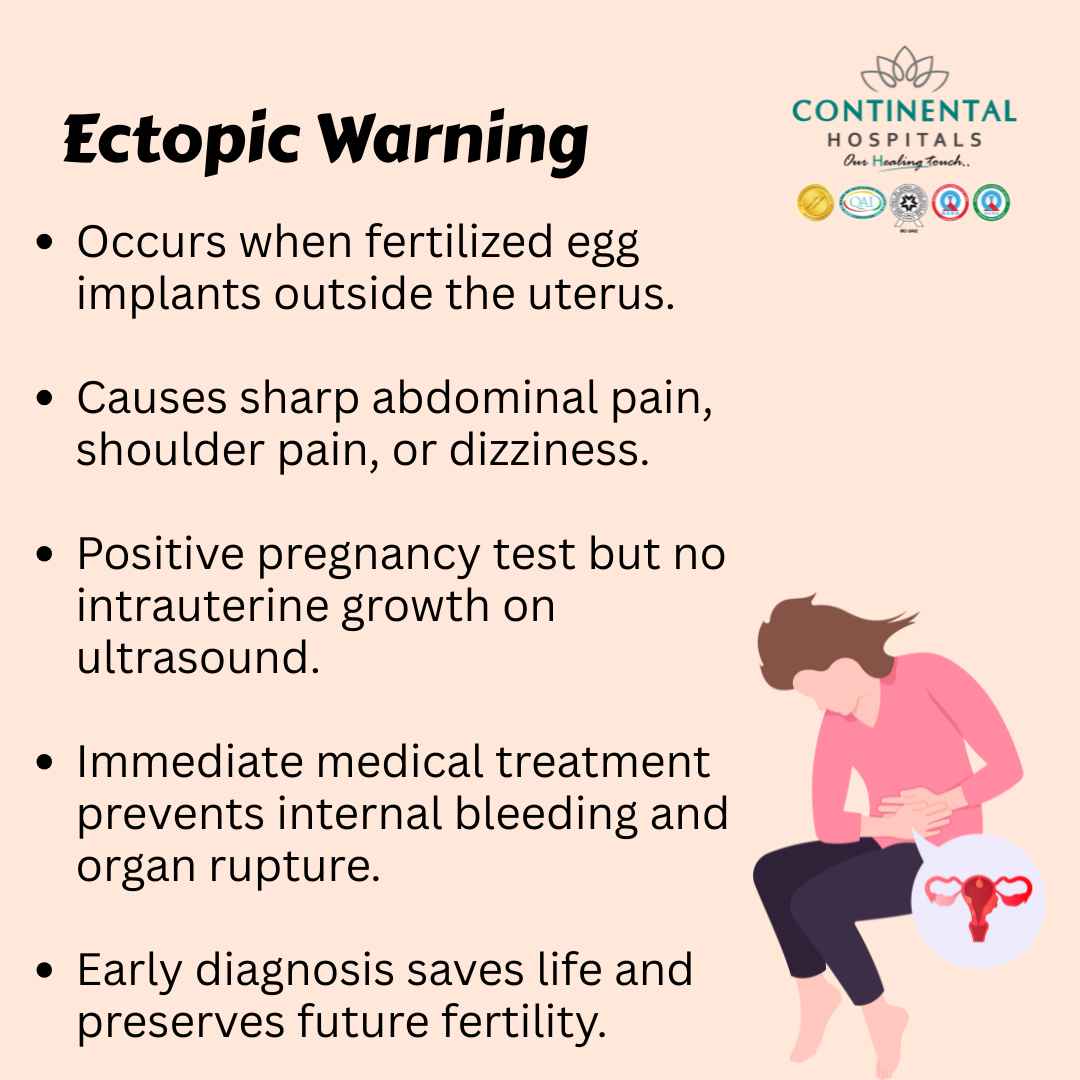Ectopic pregnancy is a serious condition that can pose life-threatening risks if not recognized early. Knowing the emergency signs such as severe abdominal pain, heavy bleeding, dizziness, or shoulder tip pain can save lives. Timely diagnosis and treatment are crucial for preserving health and fertility.