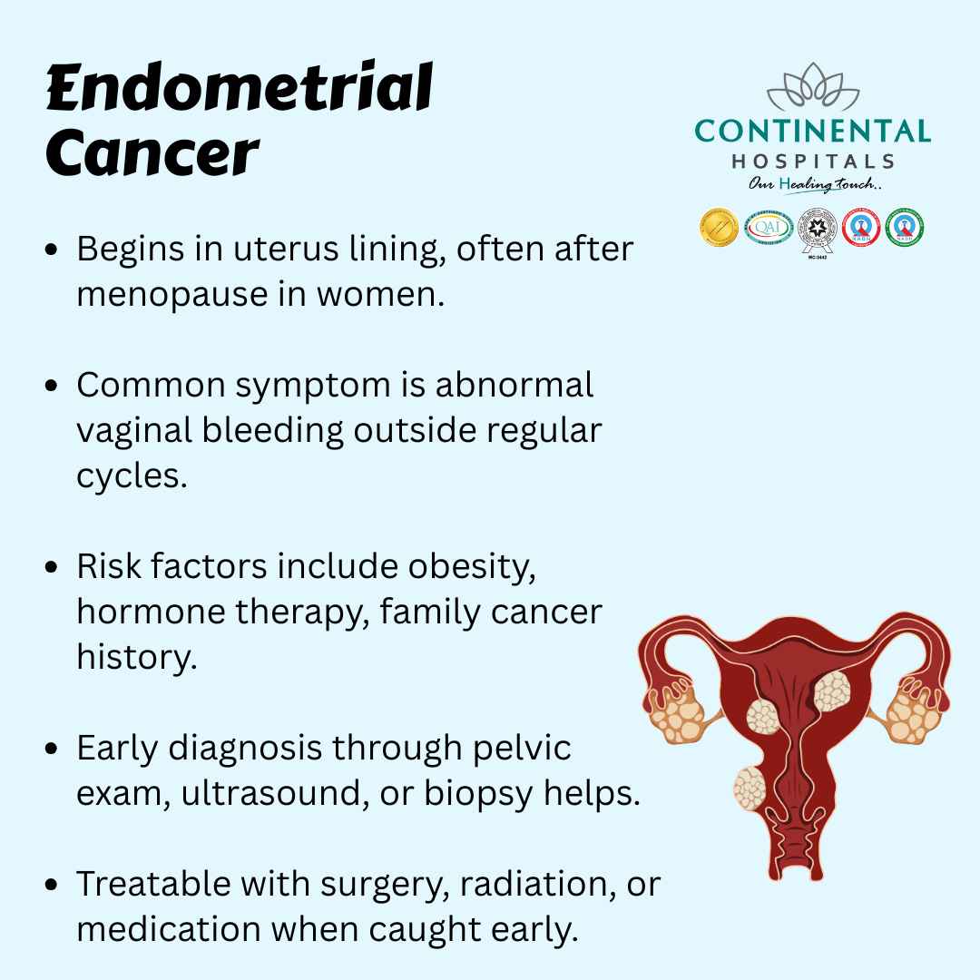 Endometrial cancer is one of the most common cancers affecting women, and knowing about it early can make a huge difference in treatment outcomes. Understanding what it is, how it develops, and what symptoms to look out for can empower women to take timely action. This blog is written for the Continental Hospitals website to provide simple, clear, and reliable information that helps women protect their health.