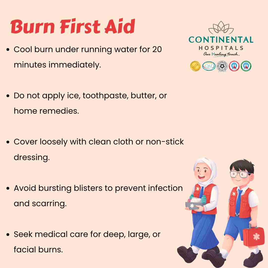 If you or someone near you has suffered a burn injury, consult an Emergency Medicine Specialist or Plastic Surgeon at Continental Hospitals immediately. Timely medical care can save skin, prevent complications, and ensure faster healing. Book an appointment or visit our emergency department for prompt and professional care.