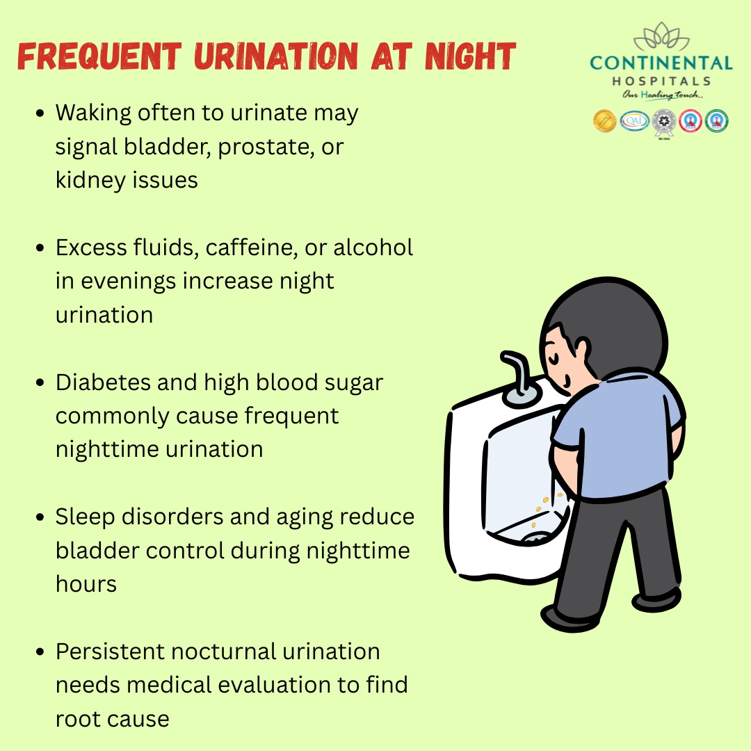 consult our Best Urology at Continental Hospitals, Hyderabad. Our experienced doctors focus on identifying the root cause and providing personalized treatment for lasting relief. Book your consultation today and take the first step toward better urinary health and uninterrupted sleep.
