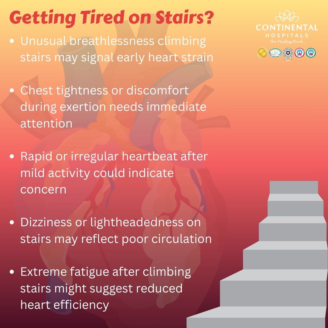 Your heart health is often reflected in how your body handles physical challenges. Getting tired on stairs is a common yet significant symptom that should never be ignored. By paying attention to these early warning signs and choosing a facility with world-class accreditations like Continental Hospitals, you can take control of your cardiovascular future. Taking the stairs should be a sign of health, not a source of struggle.