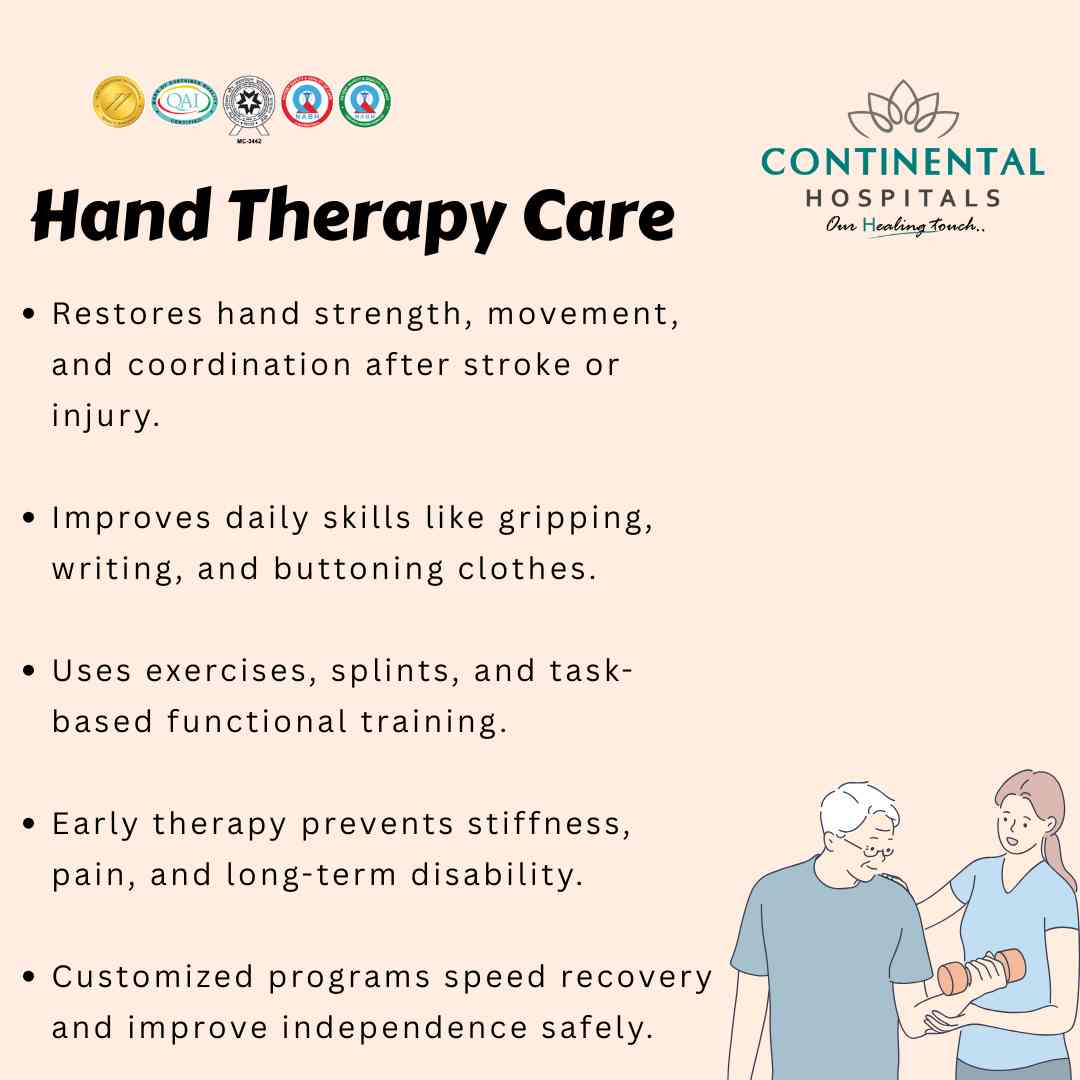 If you are facing hand weakness, stiffness, or difficulty using your hand after stroke or injury, consult our best Occupational Therapist at Continental Hospitals today. Early evaluation and personalized hand therapy can help you regain control, function, and independence.