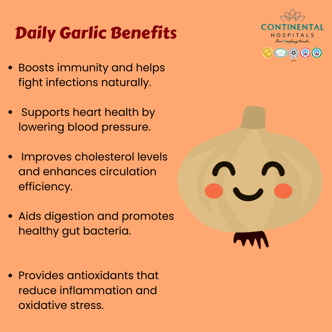 One of the most well-known benefits of eating garlic daily is improved immune function. Garlic has antibacterial, antiviral, and antifungal properties. It helps the body fight infections and reduces the severity of common illnesses like cold and flu.