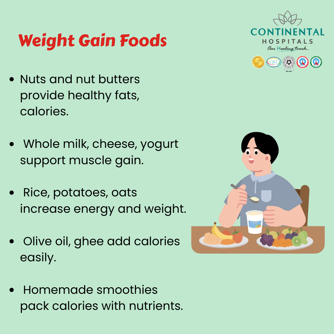 At Continental Hospitals, we are committed to helping you achieve your health goals with trusted medical expertise, advanced diagnostics, and personalized nutritional care consult our best Nutritionist, your journey to healthy weight gain begins with the right food choices and the right medical support.