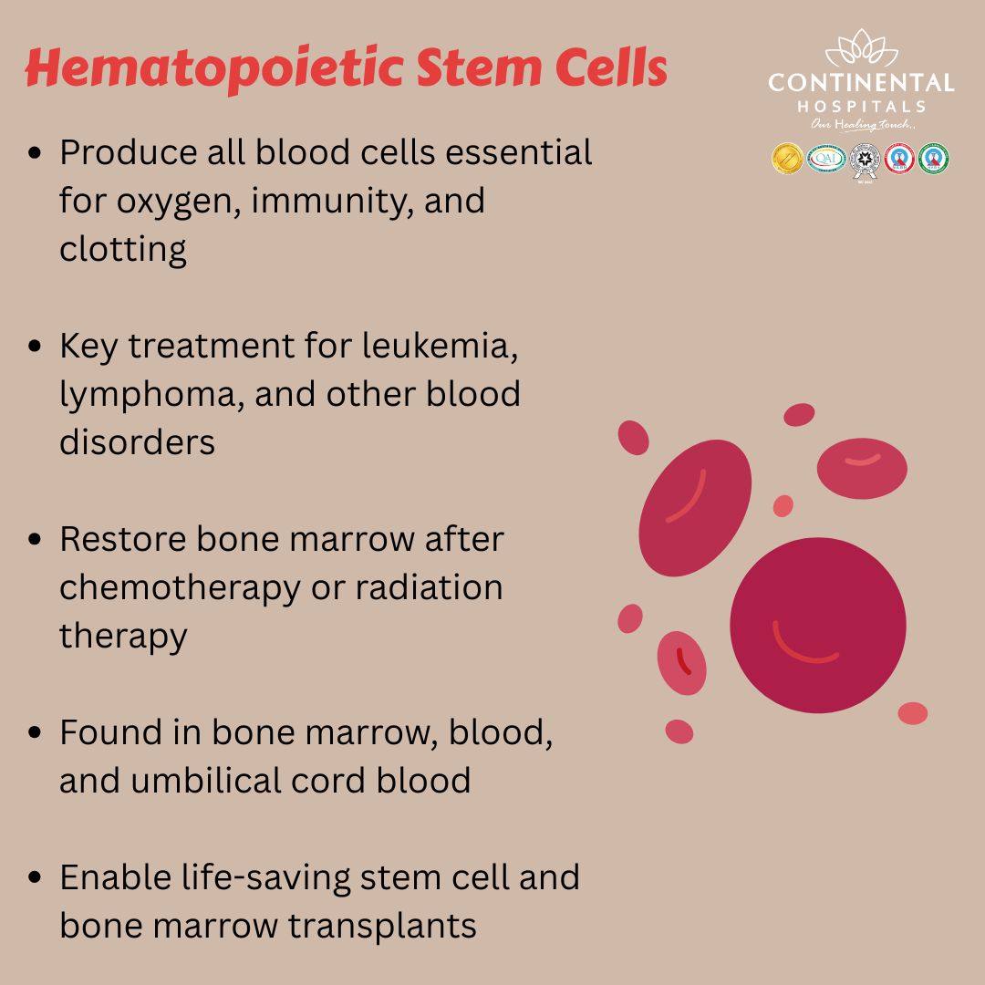 Hematopoietic stem cells are the foundation of healthy blood and immune function. These special cells are responsible for producing red blood cells, white blood cells, and platelets that keep the body functioning normally. Advances in medical science have made hematopoietic stem cells a powerful tool in treating several serious and life threatening conditions. At Continental Hospitals, Hyderabad, expert specialists use evidence based approaches to deliver safe and advanced stem cell care with a strong focus on patient outcomes.