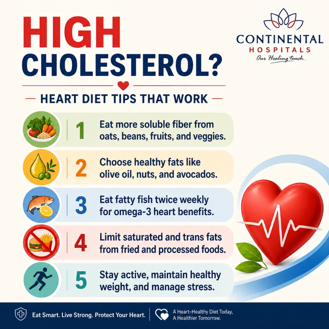 If you suffer from persistent high cholesterol or have concerns about your heart health, it is time to consult a specialist who can provide a tailored roadmap for your recovery. For expert guidance and a personalized heart-health assessment, consult our best cardiologist in Hyderabad at Continental Hospitals.