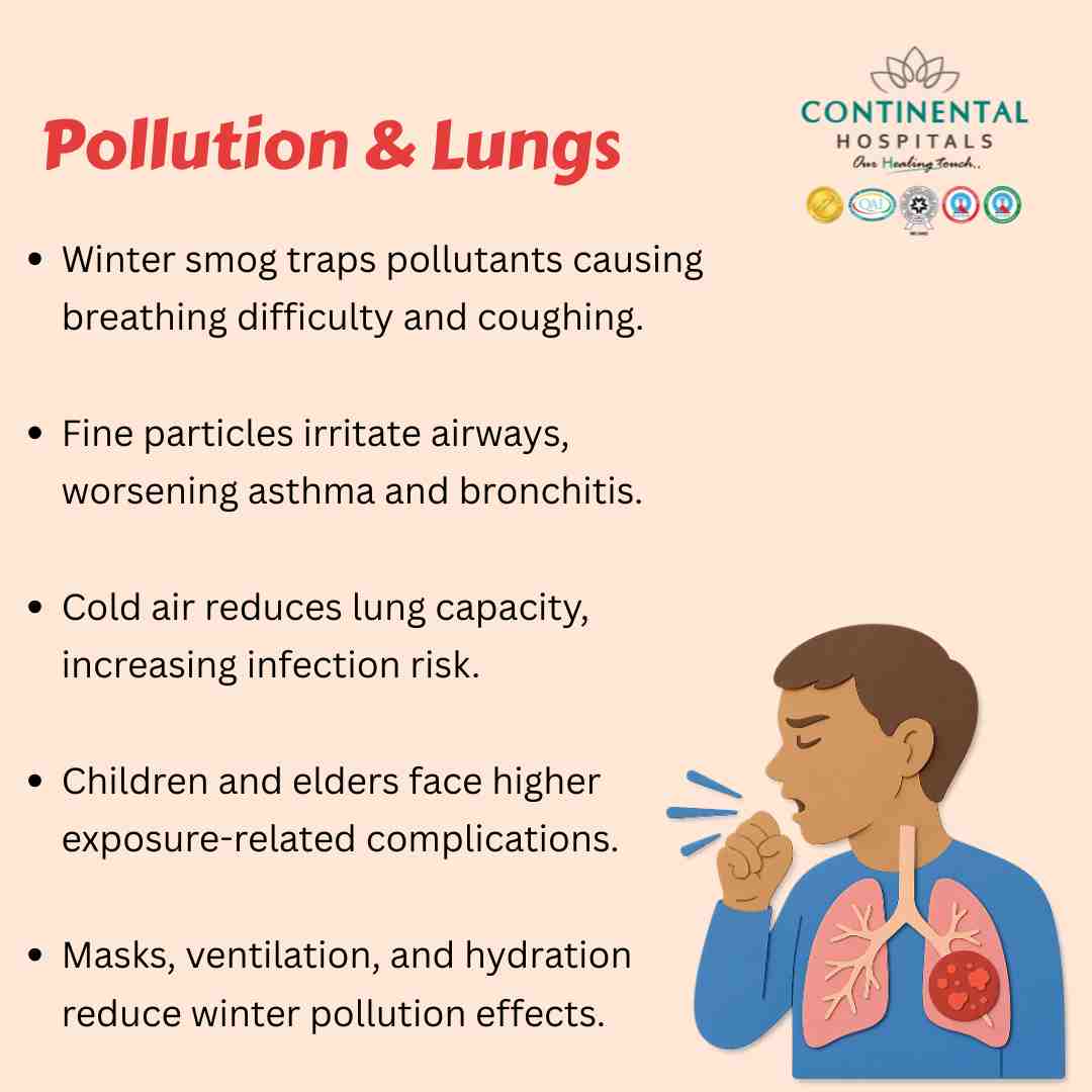 Your lungs suffer the most during winter because polluted air contains harmful pollutants like PM2.5, PM10, nitrogen dioxide, sulfur dioxide, and smoke particles.