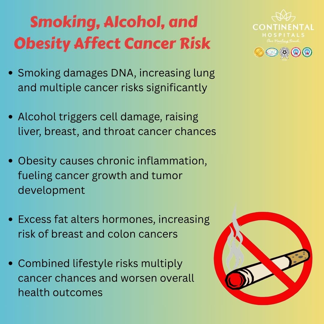 The link between lifestyle and cancer is undeniable. By addressing smoking and cancer risk, moderating alcohol intake, and managing obesity, you can significantly tilt the scales in your favor. It is never too late to make a change that could save your life. At Continental Hospitals, we are dedicated to supporting you through every step of this journey, from prevention and diagnosis to advanced treatment and recovery.