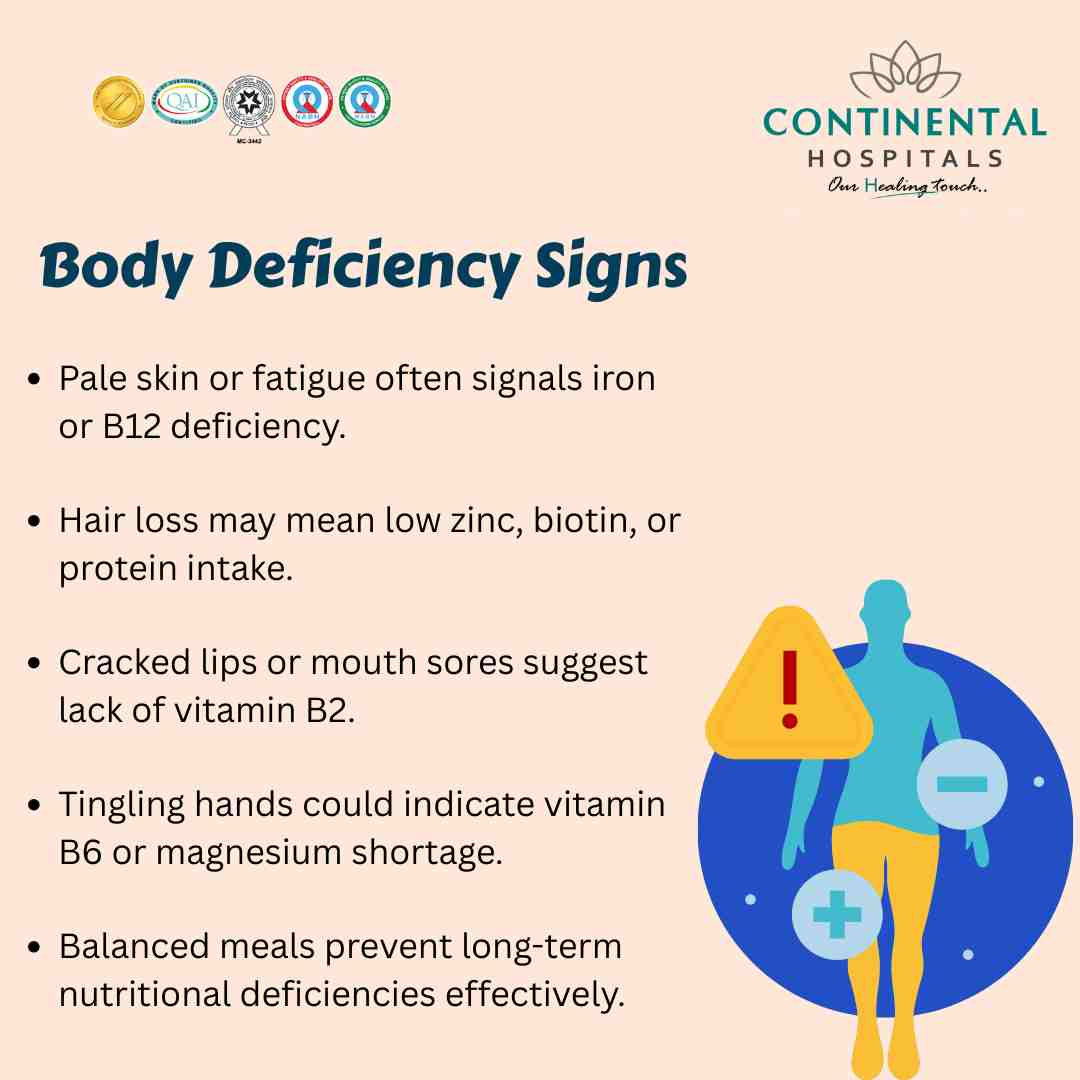 If you are experiencing any of these signs, don’t ignore them. Visit Continental Hospitals, Hyderabad, for a complete nutrition and wellness consultation. Our best Nutrition Specialists can guide you with personalized care to help you stay healthy, energetic, and strong.