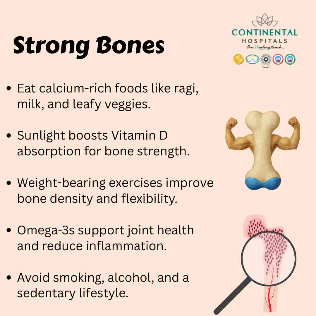 Strong bones and healthy joints are essential for an active, pain-free life. Simple changes in your daily routine, like eating nutritious foods, staying active, maintaining posture, and getting enough sunlight, can make a huge difference. Prevention is always better than cure, and the sooner you start caring for your bone health, the better your mobility and strength will be in the future.