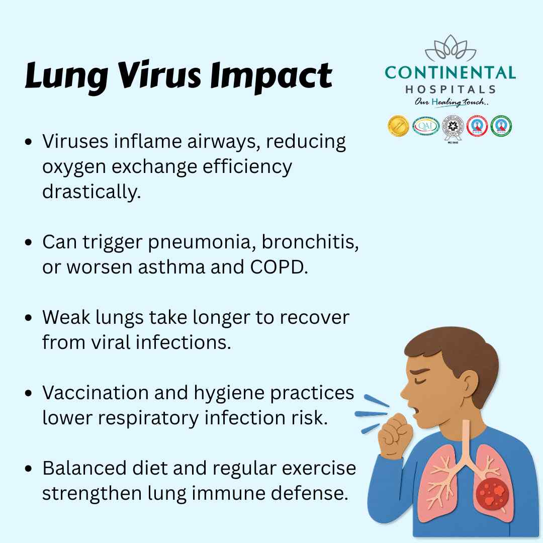 Viral infections can range from mild colds to severe pneumonia, but their impact on lung health can be significant. Protecting your lungs through prevention, timely diagnosis, and expert medical care is vital for long-term wellness. If you suffer from persistent cough, breathlessness, or chest discomfort, donât ignore the signs â early treatment can make a big difference.