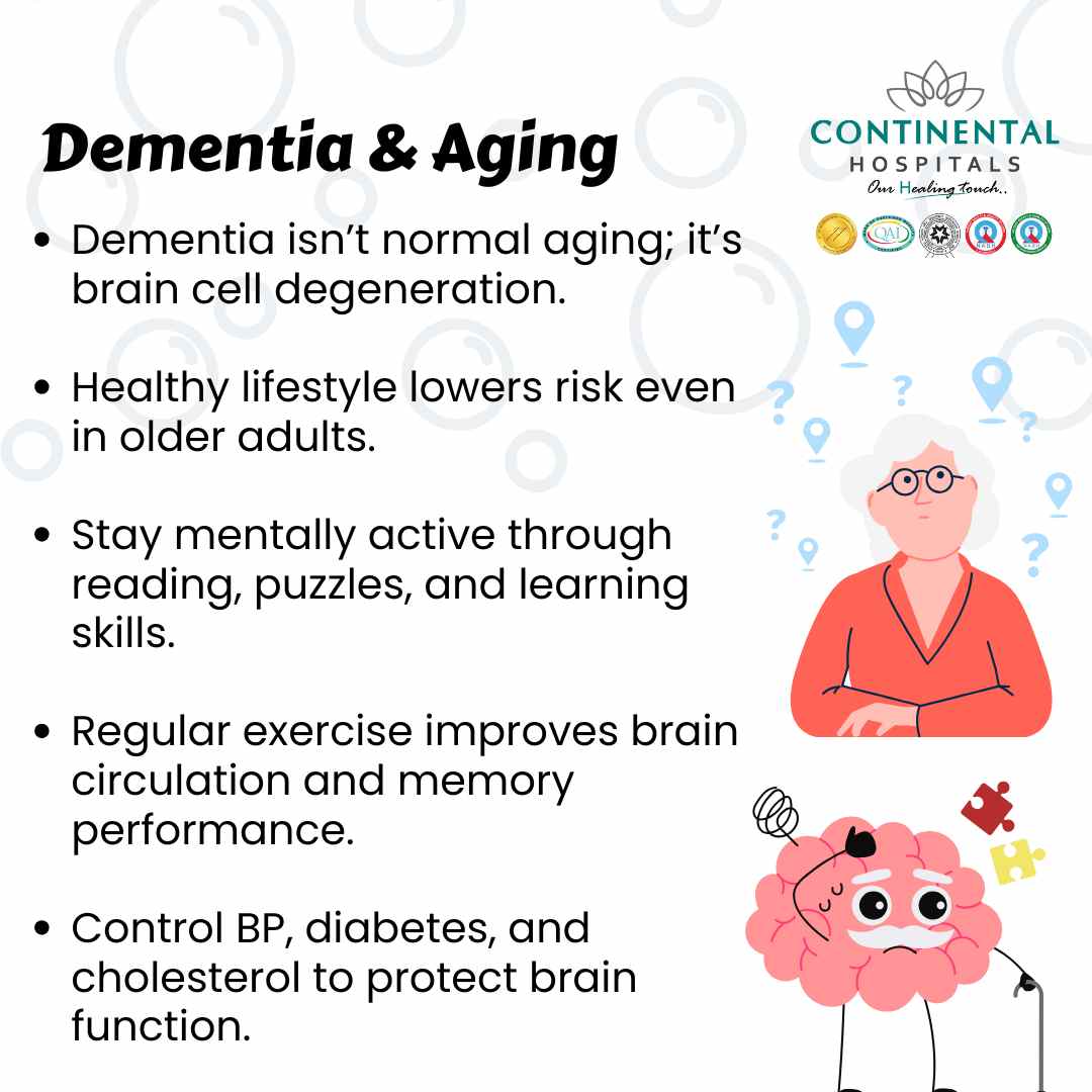 At Continental Hospitals, Gachibowli, Hyderabad, we provide comprehensive neurological and geriatric care for patients with dementia and memory-related disorders. Our multidisciplinary team includes neurologists, psychiatrists, psychologists, and rehabilitation experts who specialize in early diagnosis and personalized treatment.