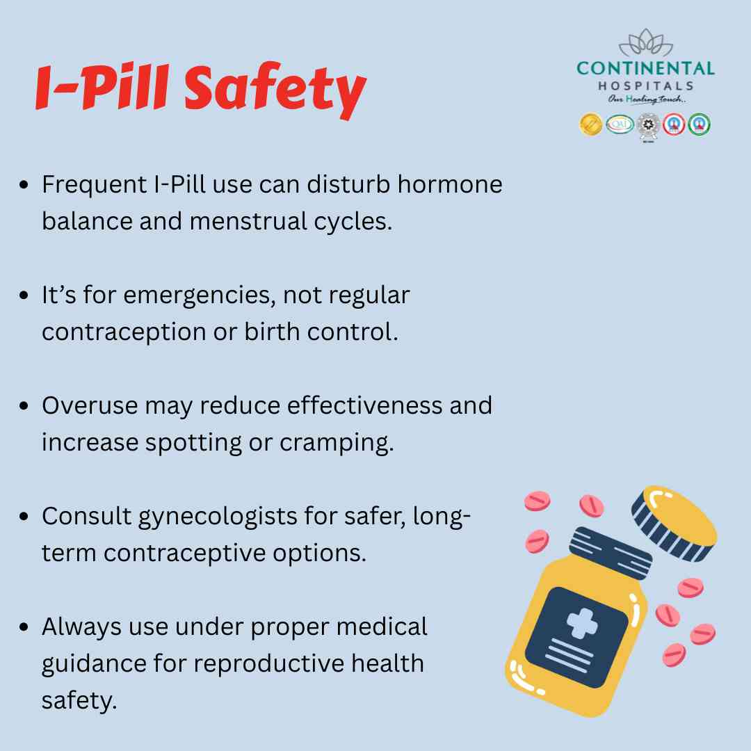 The I-Pill is a safe and effective emergency contraceptive when used correctly. However, frequent use can disturb your natural hormonal balance and lead to menstrual irregularities. It should be used only in emergencies and not as a substitute for regular contraception.
