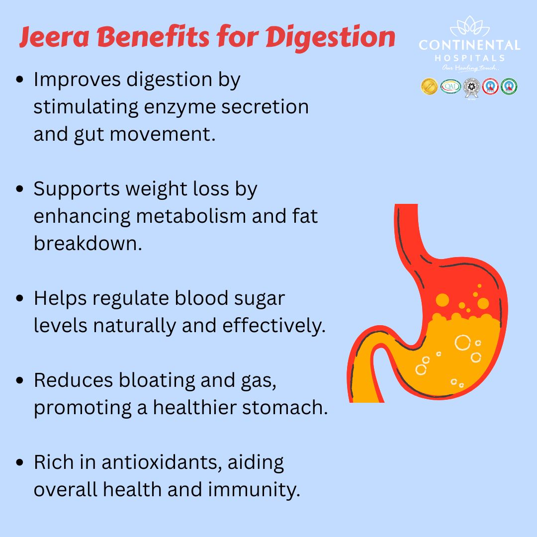 Jeera water benefits digestion when consumed warm. Soaking jeera overnight and drinking the water in the morning can help calm the stomach and improve bowel regularity.