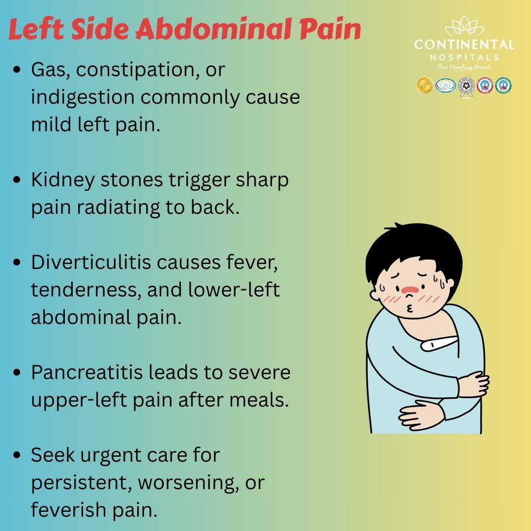 Understanding the causes of abdominal pain on the left side helps you stay calm and take the right action at the right time. In this guide, we explain the possible reasons, warning signs, and when you should seek expert care at Continental Hospitals.