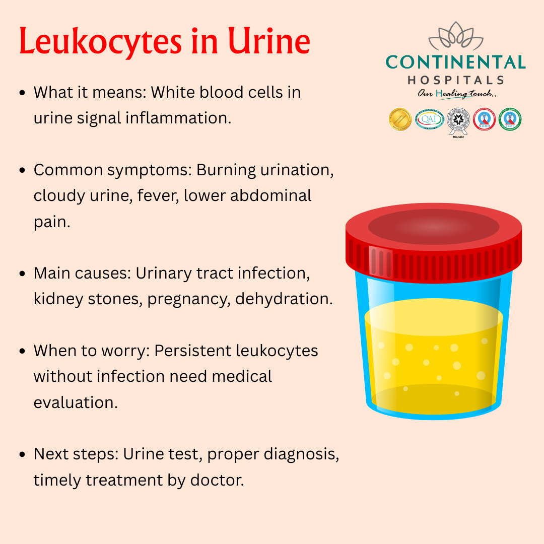 When leukocytes appear in urine, it usually indicates that your body is responding to an infection or inflammation in the urinary tract. Doctors often detect this during a urinalysis, a routine test that examines your urine for abnormal substances.