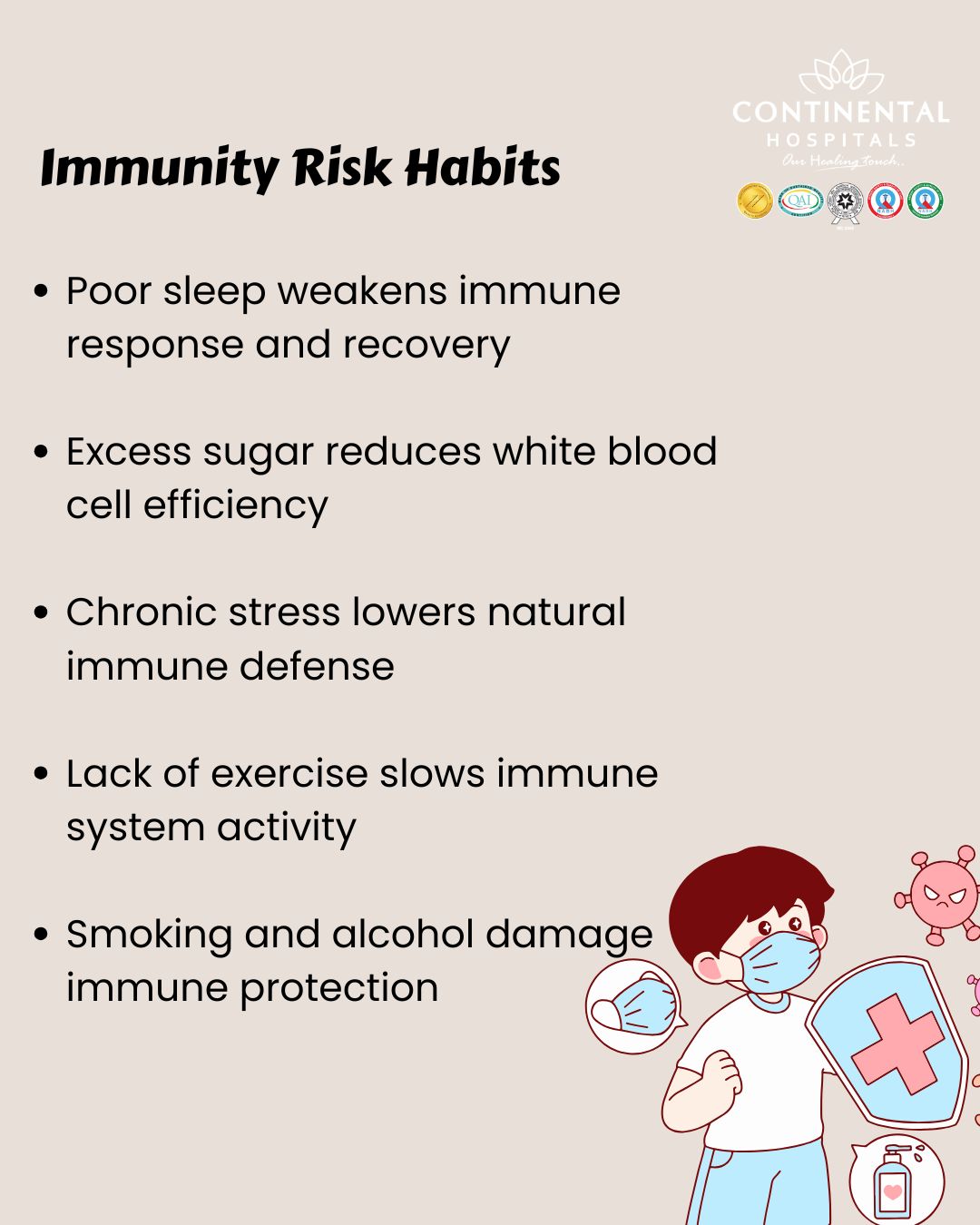 Continental Hospitals provides comprehensive health assessments to evaluate immune strength. Services include: