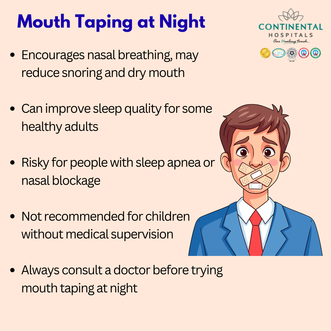 Sleep related breathing problems often require expert evaluation rather than home remedies. Mouth taping at night may seem simple, but underlying conditions like nasal blockage, sleep apnea, or respiratory disorders should never be ignored.