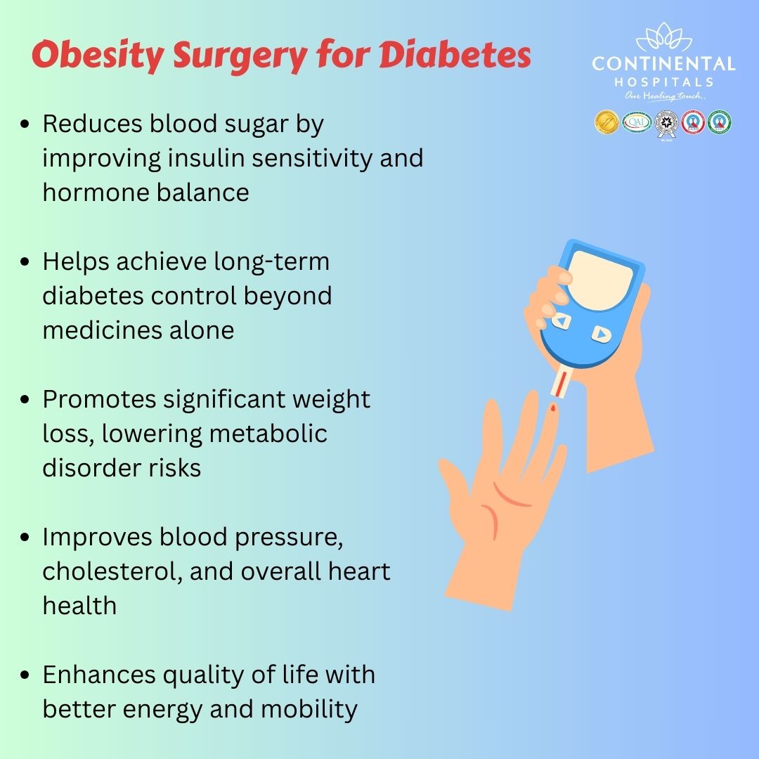 Visit our Bariatric Surgery Department at Continental Hospitals, Hyderabad, and consult expert bariatric surgeons and diabetes specialists for better health and blood sugar control.