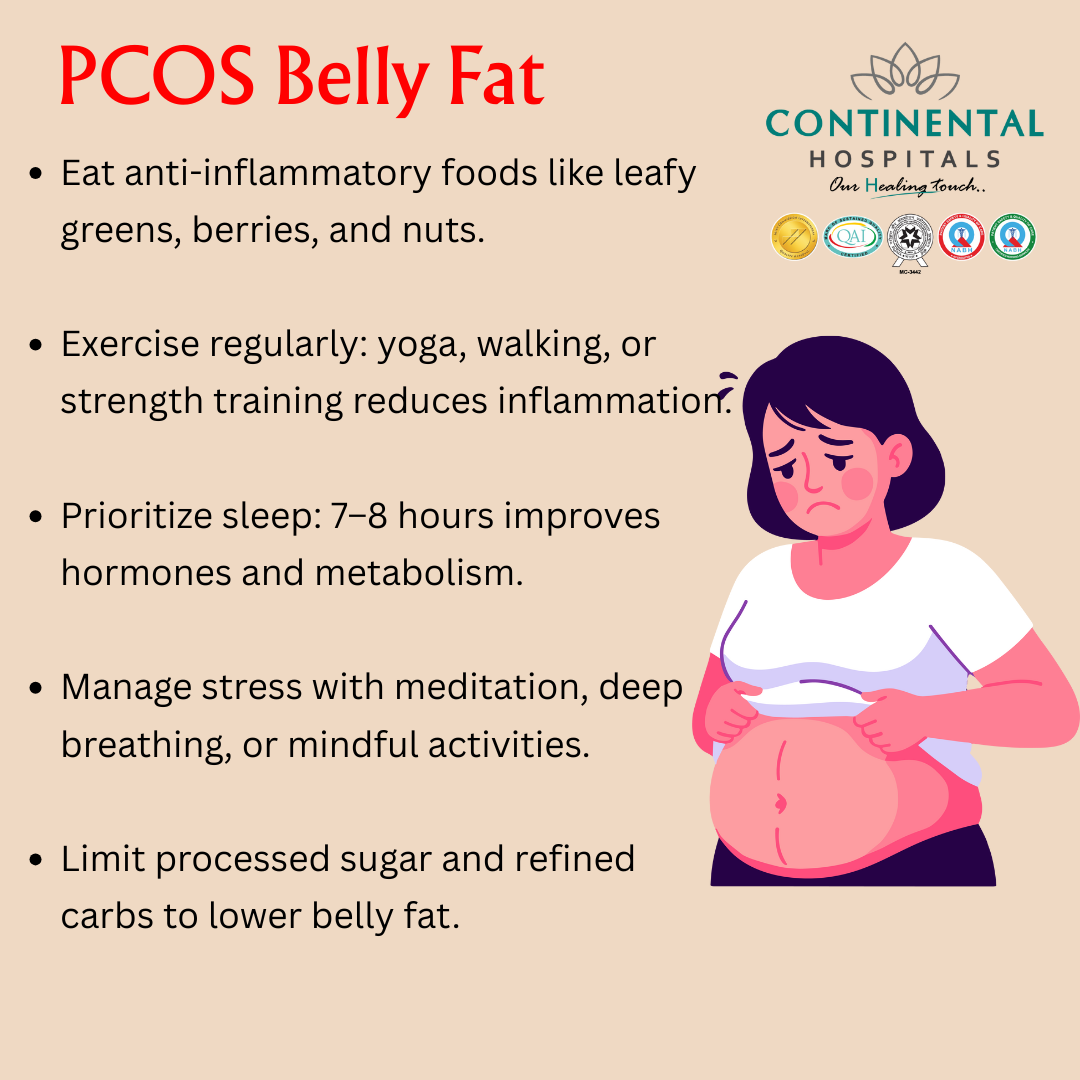 Addressing PCOS belly fat requires a combination of lifestyle changes, anti-inflammatory foods, and targeted exercise.