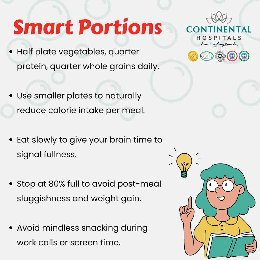 If you suffer from overeating habits, frequent hunger, weight fluctuations, acidity or lifestyle-related conditions, consult our best Clinical Nutrition Specialist at Continental Hospitals for expert guidance and a customized diet plan that fits your daily routine. Healthy eating starts with the right portion size. Your health is an investment that matters.