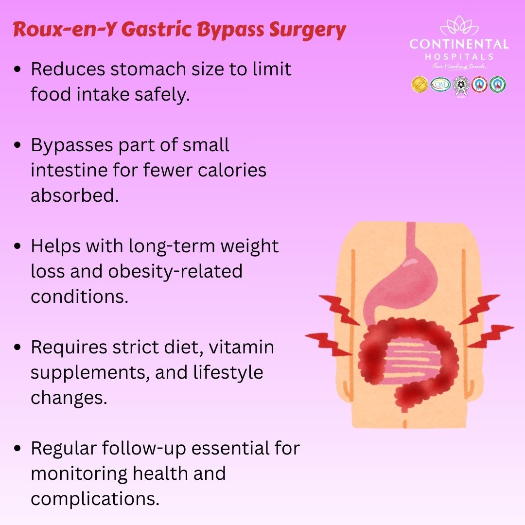Continental Hospitals is recognized as a leading best hospital in Hyderabad for bariatric procedures including Roux-en-Y gastric bypass surgery. Here’s why patients trust Continental Hospitals: