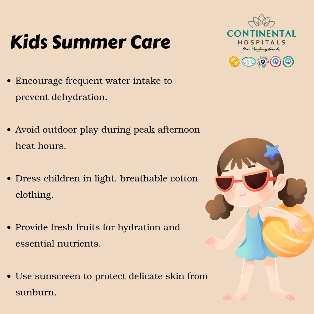 At Continental Hospitals, recognized as the best hospital in Hyderabad, our pediatric experts guide families with practical, science based pediatric summer care advice to keep children healthy throughout the season.
