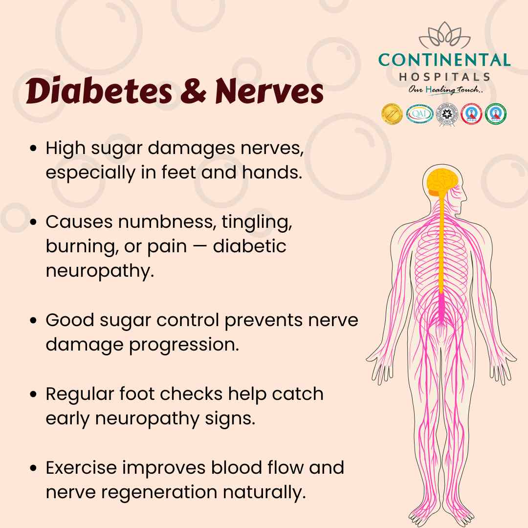 If you suffer from diabetes-related nerve symptoms, consult our best Diabetologist or our best Neurologist at Continental Hospitals, Hyderabad. Our specialists are dedicated to helping you manage diabetes effectively while safeguarding your nerve health for a better quality of life.