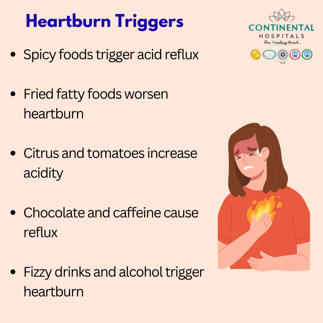 Heartburn occurs when the lower esophageal sphincter becomes weak or relaxed. This valve normally prevents stomach acid from moving upward. Certain foods can relax this valve or increase acid production, leading to symptoms like burning pain, sour taste, bloating, or nausea.