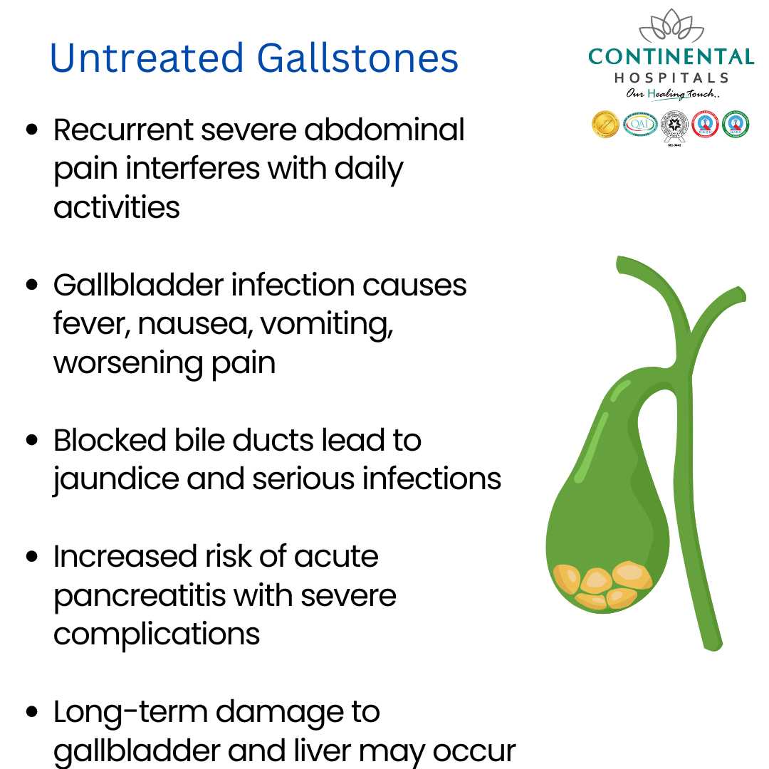 Gallstones can remain silent for years or cause sudden, severe symptoms. Leaving them untreated can lead to inflammation, bile duct obstruction, pancreatitis, and rarely, cancer. Recognizing gall stone symptoms, understanding risk factors, and seeking timely treatment are crucial to prevent complications.