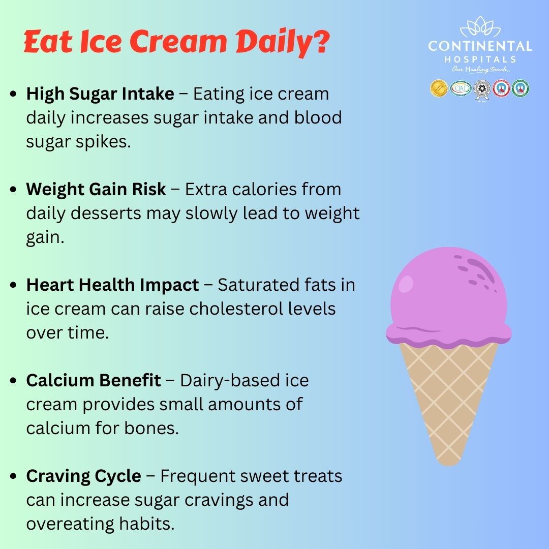 One of the biggest concerns with eating ice cream daily is high sugar consumption. Ice cream contains added sugars that can quickly increase blood glucose levels. Over time, consistently high sugar intake may increase the risk of weight gain and metabolic issues.